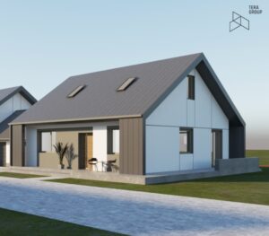 - D1 – 112m² powierzchni mieszkalnej + 21m² garażu. Działka o powierzchni 600m² – cena 495tyś zł brutto – ostatni dom dostępny