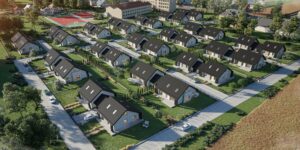 Osiedle zlokalizowane w Strawczynie przy ul. Żeromskiego – malownicza lokalizacja. W odległości 400m od zalewu, 600m od basenu, 200m od przedszkola i 100m od szkoły.