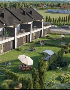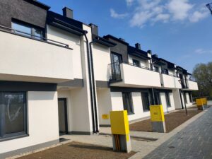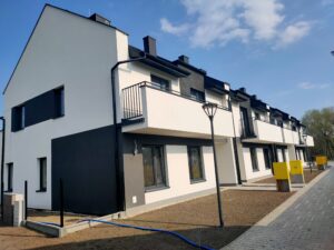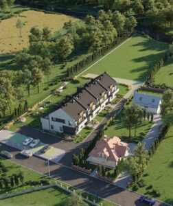 Nowiny Zagrody ul. Łąkowa . Inwestycja polegająca na budowie 4  budynków mieszkalnych jednorodzinnych  w zabudowie szeregowej 8 mieszkań realizowana w malowniczej części gminy Sitkówka w otoczeniu Chęcinsko-Kielceckiego Parku Krajobrazowego.